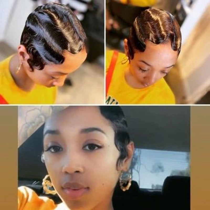 Human H Air T Frontal Deep Wave Pixie Cut Bob Wig