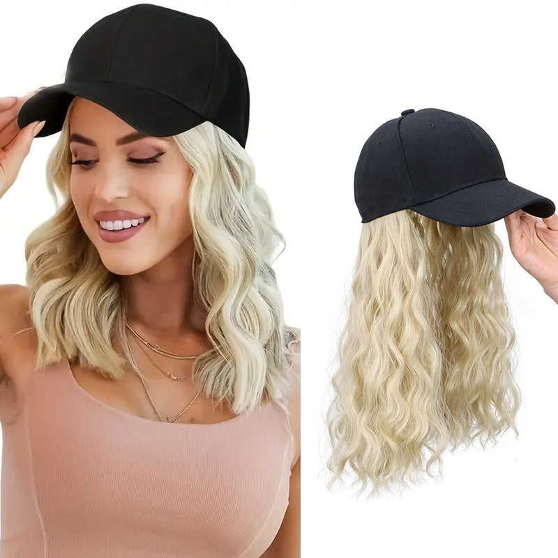 Women's Mid-length Hair Peaked Cap With Wig In One